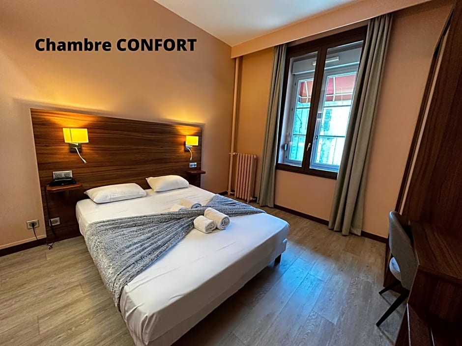A great hotel. It’s old and authentic but well renovated and the beds are very comfortable. It’s always my first choice when I come to Lons le saunier. It’s run independently which is nice given that many hotels are chains. It’s easy to park and the station is right opposite so transport either way is easy. It’s quiet and cosy. And the staff are really wonderful: friendly and helpful. It’s very central: five minutes walk from the centre (plenty of restaurants and bars). I would highly recommend this hotel.