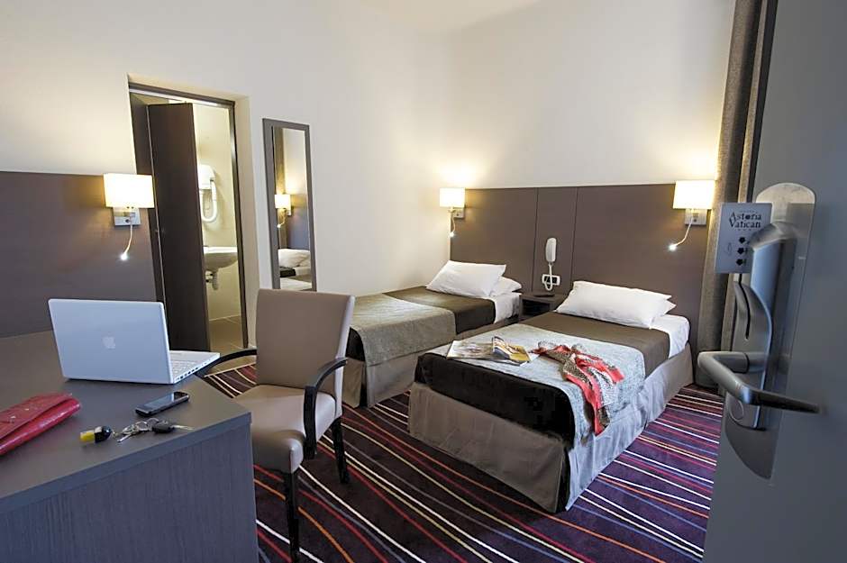 Inter Hotel Astoria-Vatican offers a variety of rooms to accommodate different group sizes: there are Quadruple, Triple, Standard Double, Single, and Standard Twin rooms available. Smoking is not allowed in any of the rooms. Bed sizes range from Twin to Double, and room sizes vary between 129 to 269 sqft, suitable for 1 to 4 adults with or without children.