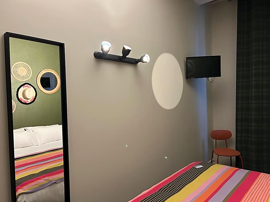 Central nicely located my tiny room overlooked crowded bars pubs and brasseries's terraces getting out jovial mood.All was provided inside to relax and keeping up cool.