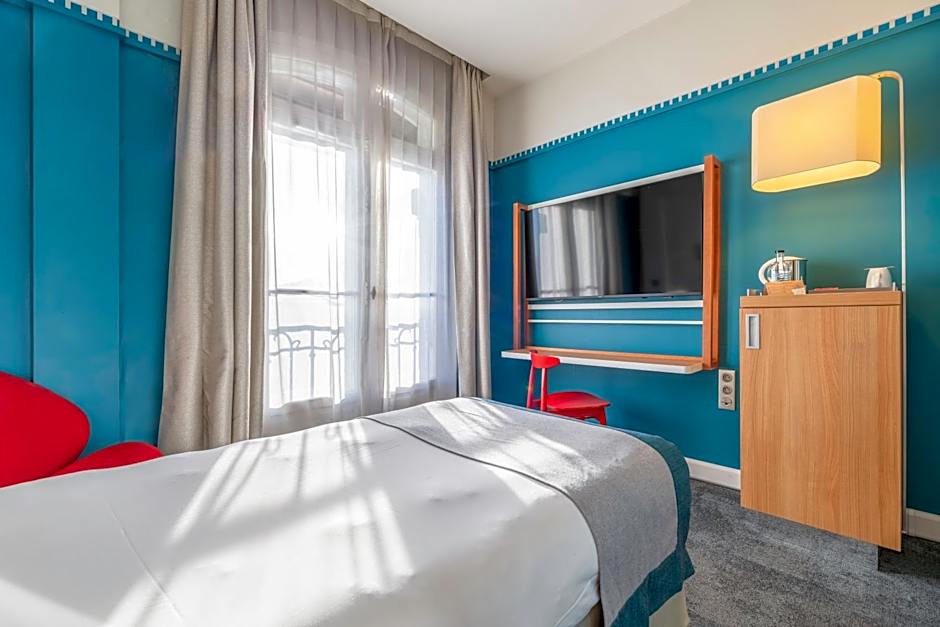 Special building, not your typical hotel. Location is very central to old Lyon city, but access can get confusing as it's between multilevel structures of road and train station railways. No noise from outside, but you may hear a neighbor room if they get noisy or a child cries. Our room was bigger than what was filed on booking.com, the rooms in the corners of the building are bigger!