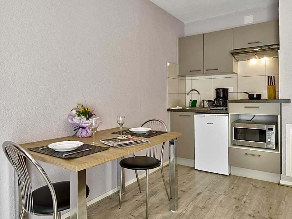 The residence has a good location in a quiet area. There are plenty of parking places, no charge. It can be crowded sometimes, mainly in vacations or hollydays. Seems to be a very popular place for French, 90% of the cars had French license plates. Restaurants have very good food in the area (not quite cheap though). Wonderful paths in the woods for walking or biking, nice thermes, swimming pool, ice skating and skiing (indoor). Overall i think it's a good ratio between the price and the offer.