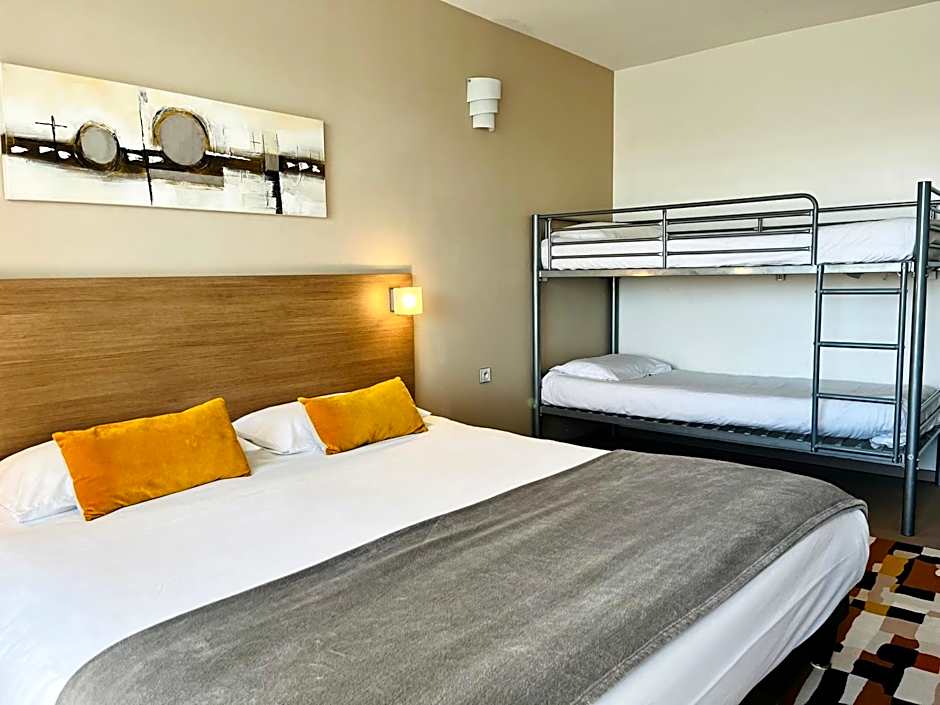 At the Forme-hotel & Spa Montpellier Sud-Est - Parc Expositions - Arena, the available room types include Family, Triple, Double, and Suite. The Family Room with Terrace can accommodate 2 adults and 2 children, featuring a bunk bed and a queen size bed. The Triple Room consists of two rooms and can accommodate 2 adults and 1 child, with a twin bed and a queen size bed. The Standard Double Room and Superior Double Room with Terrace and Kitchen can each accommodate 2 adults, with a queen size bed in both. The Family Two Bedroom Suite with Terrace and Kitchen can accommodate 2 adults and 2 children, featuring a queen size bed and 2 twin beds. Smoking is not allowed in any of the rooms.