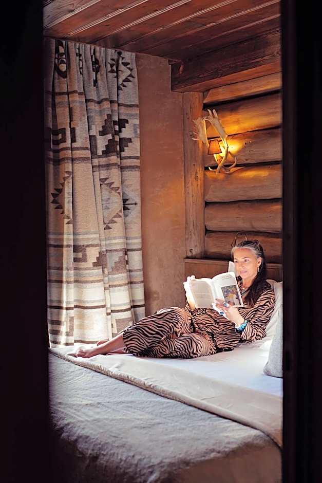 Discover the Lodge room with its cozy spirit, tartan fabrics, fur furniture and ostrich leather headboard with a small independent dressing room.