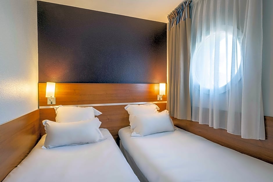 At Comfort Hotel Linas - Montlhery, there are Twin Rooms and Double Rooms available. Both room types are non-smoking and have a room size of 151 sqft. The Twin Rooms accommodate 2 adults and 1 child, with 2 twin beds, while the Double Rooms also accommodate 2 adults and 1 child but have 1 double bed.