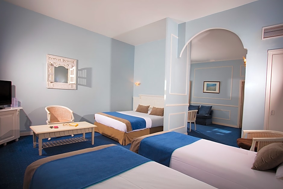 Hôtel Royal offers three types of rooms: Superior Room, Family Room, and Comfort Room. The Superior Room is a double room with a size of 215 sqft, accommodating 2 adults and offering a double bed or twin beds. The Family Room is a larger room with a size of 269 sqft, accommodating 4 adults and 2 children, with a double bed and a sofa bed. The Comfort Room is a double room with a size of 161 sqft, accommodating 2 adults and offering a double bed. All rooms are non-smoking.