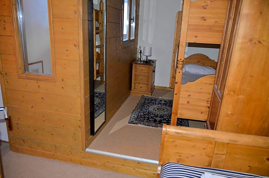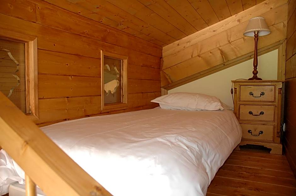 This family room has a double bed and either a bunk bed or a mezzanine level with a single bed.