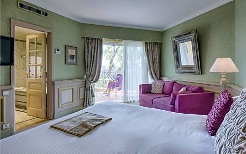 Accommodations span a broad range, from Bastide and Mas rooms to suites and villas, many featuring garden or pool views and private terraces. The lineup includes Deluxe Bastide, Room With Pool View, Suite Villa with Terrace, and expansive options like Suite Grand; larger suites can accommodate up to eight adults and five children.