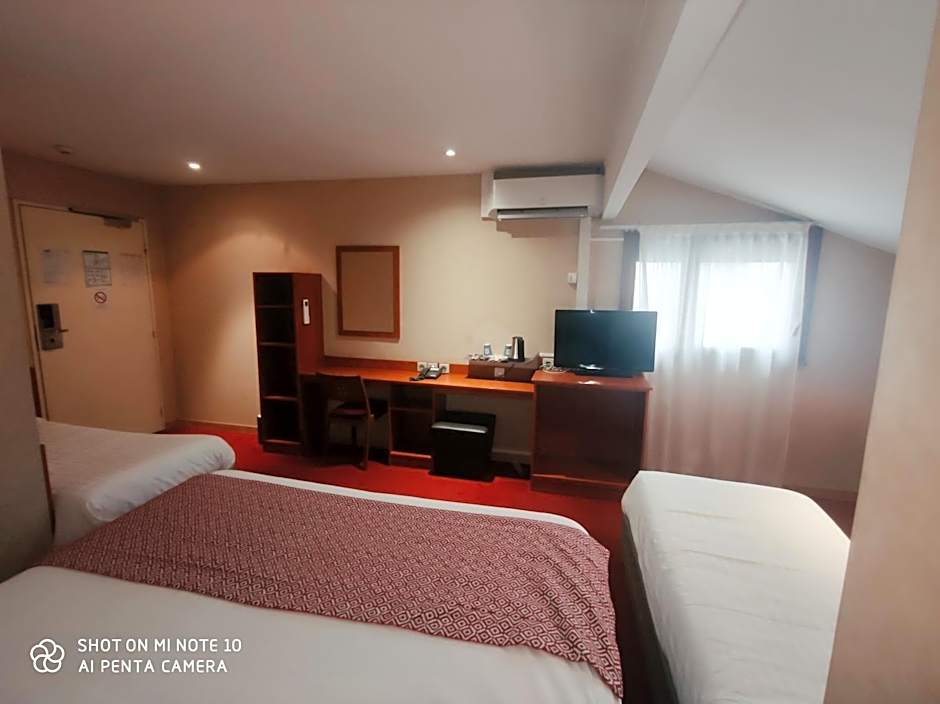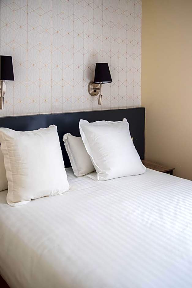 Indulge in the comfortable and spacious rooms available at the Kyriad Nîmes Ouest - Sortie Autoroute Nîmes Ouest A9 A54 - Parking gratuit - Terrasse - Jardin - Plateau repas - Petit déjeuner dès 5h30 - Animaux bienvenue. Whether you're traveling alone or with a group, there's a room type to suit your needs. The Standard Twin Room offers two twin beds and plenty of space to relax after a day of exploring Nîmes. If you're traveling with your family, the 2 Double Beds 1 Single Bed room is perfect for you, accommodating up to 5 adults and 4 children. Each room is tastefully decorated and equipped with modern amenities to ensure a comfortable stay.