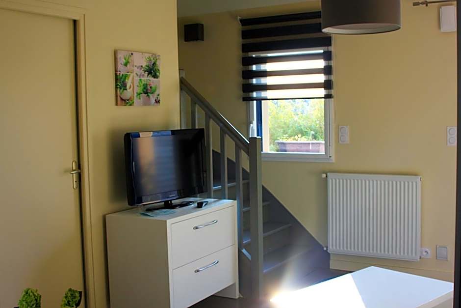The property was a duplex ( a small house ) well equiped ,large bedroom upstairs ,sun loungers and a Bisto set on the small terrace. Comfortable bed . Very clean . The Resteraunt is pricey ,but it is a proper resteraunt with excellent service , and good food ,we ate there our 1st and 4th night. We had 4 nights there ,excellent location for sightseeing and Mt St Michael is a must . We wouldn 't hesitate to stay there again .