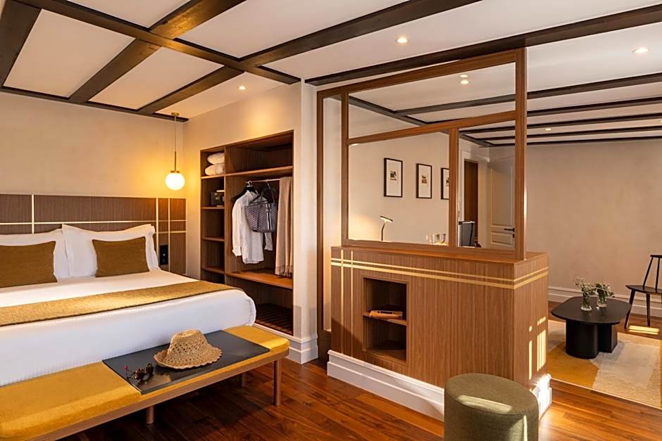 Hotel Le Colombier offers a variety of room types including Family Rooms, Exclusive Single or Double Rooms, Superior Double Rooms, Standard Single or Double Rooms, and Suites. All rooms do not allow smoking and have different sizes ranging from 151 sqft to 291 sqft. The rooms can accommodate either 2 adults and 1 child or 4 adults and 2 children, depending on the type of room. The beds available in the rooms include Sofa Bed, Queen size bed, Double bed, and King size bed.