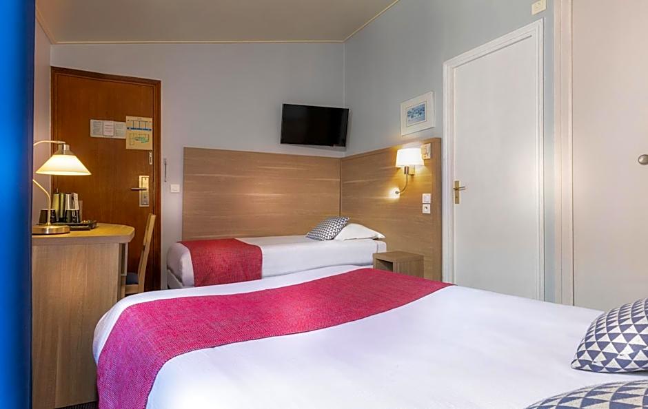 Nice and helpful staff, great location (the métro is right around the corner, takes like 20 min to get to châtelet), clean rooms, comfortable beds and a heavy curtain for the window - the street was pretty lively with many lights but the curtain kept the room in total darkness at night. A basic bathroom, pretty much what you'd expect. Really nice place!