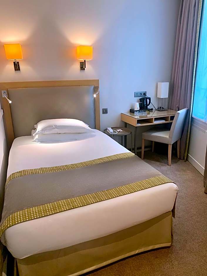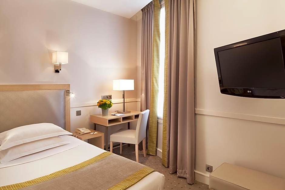 Large comfortable rooms, delicious breakfast buffet, great location (walk to Eiffel Tower). The bathrooms were spacious, furnishings throughout were updated and fresh, rooms were quiet and able to be darkened (shutters and curtains) -- perfect for a good nights sleep. Best of all -- the reception staff were incredible: friendly, helpful, provided advice on local restaurants, and how to deal with the Olympic security issues, and umbrellas were flourished when needed. Five stars to whoever selected and trained staff -- exceptional service!!