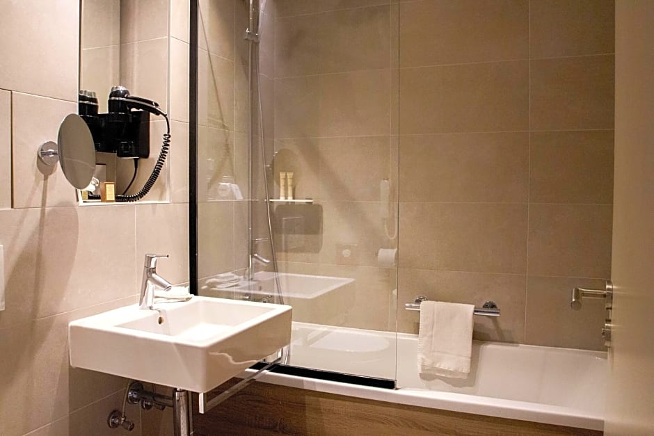 Spacious and very bright double room. Please note that a request made after 2pm on the d-day for separate beds cannot be guaranteed. You will find a double washbasin in the bathroom and a separate toilet