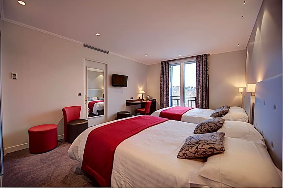 The Hôtel Du Midi Paris Montparnasse offers a variety of room types, including Small Single, Junior Suite, Quadruple, Deluxe Double, Superior Double, Superior Triple, Standard Double, and Single rooms. Smoking is not allowed in any of the rooms. The occupancy ranges from single occupancy to accommodating up to four adults. The bed sizes range from Double to Queen size, with some rooms offering a combination of Twin and Queen size beds. Room sizes vary from 108 sqft to 291 sqft.