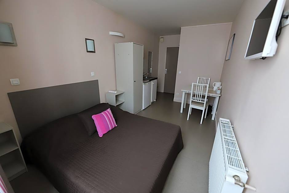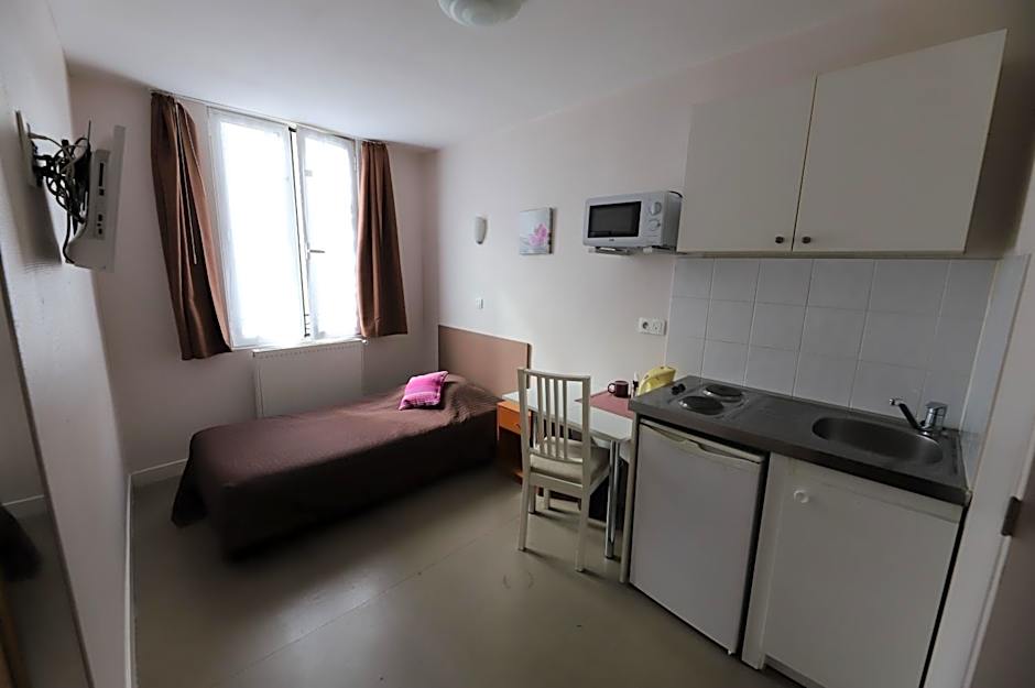 Good location, plenty of grocery stores and eateries around. The neighborhood seems to be safe.There are some basic utensils so guests can prepare their meals at the room if they prefer so. For Paris (renowned for its creepy cheap accommodations) it is 8 of 10 as a score. I recommend it for a short stay without kids.