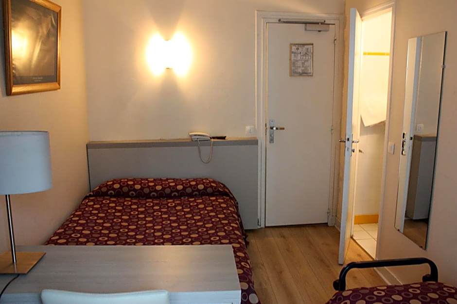 The big bonus of this hotel is the location. Quiet neighborhood, the hotel is located between two metro stations: Republique and Strasbourg Saint-Denis, a 5-8 minute walk away. Lots of terraces, pubs, cafes, patisseries and shops within 150 m around the hotel. If outside noises bother you at night, close the window and the thermal insulation completely isolates the sound. The hotel has an elevator. The receptionists are super OK, with a 24/24 hours schedule, and the rooms are cleaned daily. The rooms are relatively small in size, but the accommodation rate is determined by the location of the hotel. All in all, I recommend this hotel, pleasant stay, you feel safe and welcome.