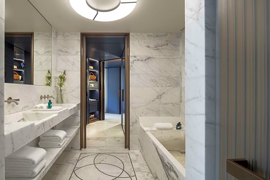 This junior suite offers a balcony, a city view and a separate seating area. It has LED TV, touch screen room controls, as well as a mini-bar and a coffee machine. The bathroom in Statuario marble is bathed in natural light Guests have free access to the Akasha Holistic Wellbeing Center with full use of the indoor pool, fitness center, hot tub, sauna and steam room. A baby cot OR an extra bed can be accommodated in this room.