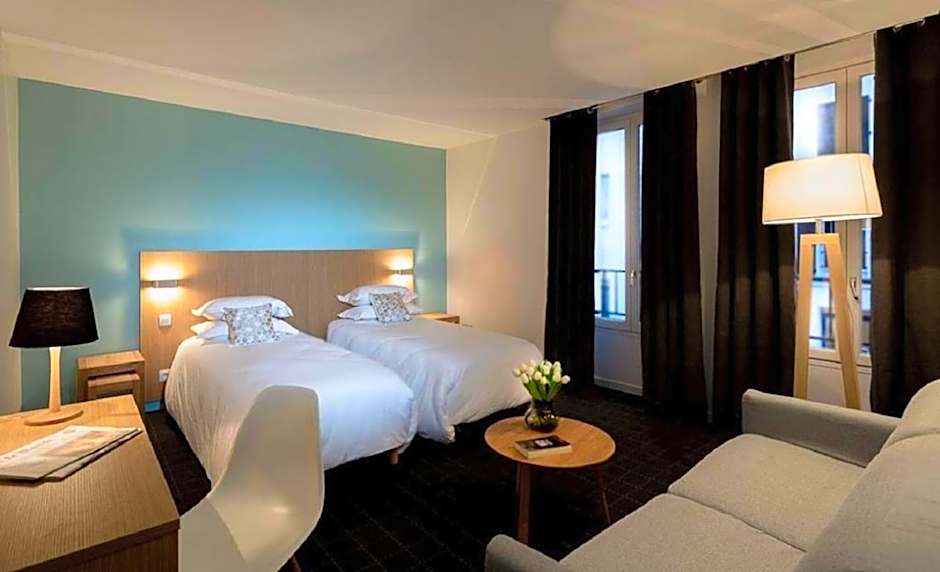 The staff were very kind, understanding, and chill. Helpful and friendly. We stayed as a family and had no complaints at all. It was truly nice and one of the cleanest hotels I’ve ever stayed in — it smelled fresh and was spotless. The location is 6 minutes from the metro, with many buses passing by, and about a 30-minute walk to the Eiffel Tower. The streets are safe; even when I came home late at night, I never felt scared. It was always a good area. I definitely recommend it.