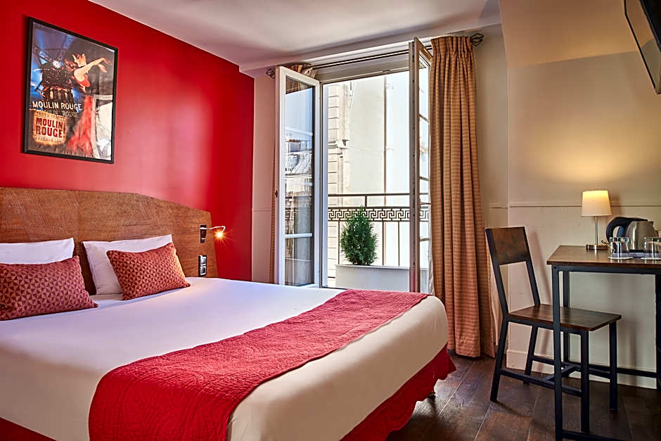 Chambre Double avec balcon vue Moulin Rouge is 129 square feet and includes a double bed 131-150 width.
