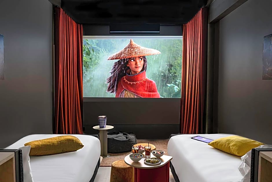 This double room has air conditioning, satellite TV and soundproofing. This room offers a movie projector, a dolby sound system and streaming services like Netflix, Amazon and 7 VOD platforms . This hotel is an hotel cinema. This room is equipped with a touch pad and PS5 can be added with an extra charge.