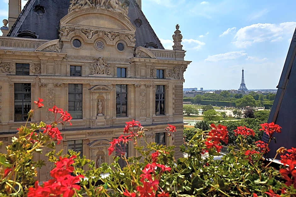 This large room of 85 ft² is decorated with colorful tones and features a stunning view on the Louver Museum, and an overview of the Eiffel Tower from the window. The private bathroom has a magnifying mirror, bathrobes, and slippers and a bathtub. Please note that this room cannot accommodate an extra bed.
