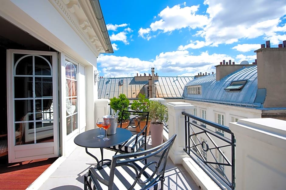 This suite features a separate living room and has a view of the rue des Beaux-Arts.