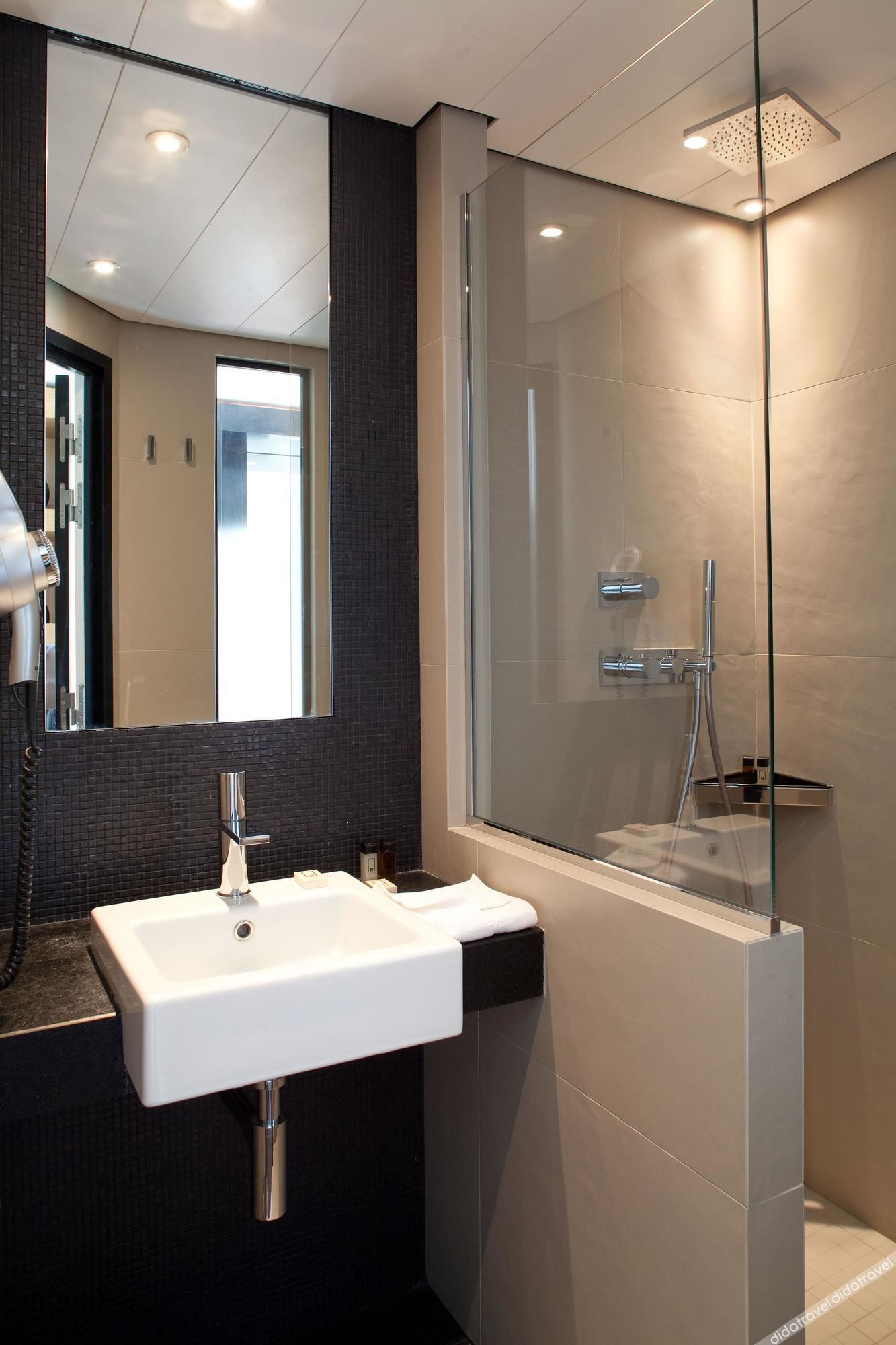 Minor issues: the shower was very comfortable in terms of temperature and pressure, but the water spread a bit too much into the rest of the bathroom. Additionally, there are no outlets near the bedside table or headboard. Nothing major, though!