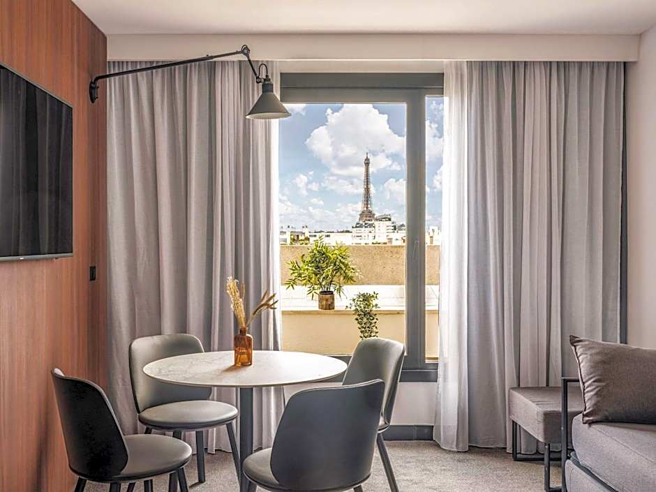 I had a delightful stay at this hotel. Its location was incredibly convenient, making it a breeze to explore Paris. While my room didn't have a great view, it was clean and comfortable, providing a cozy retreat after a day of sightseeing. The real highlight was the rooftop view of the Eiffel Tower, which was simply spectacular. The staff was also wonderfully accommodating, ensuring a memorable experience overall. Highly recommended!