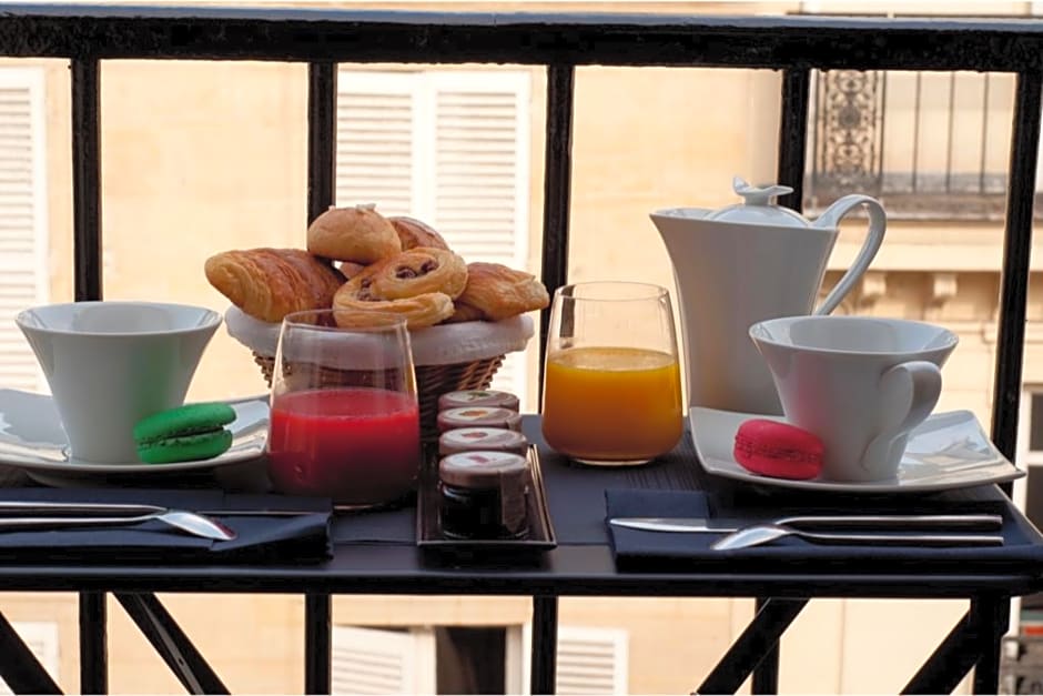 Cute little boutique hotel off of Champs Elysees. Walkable to everywhere basically. Lots of restaurant options nearby. Staff was friendly, hotel has an elevator. Room was perfect (for European standard), hotel decor was very modern and Tres Chic! We were greeted with a welcome card and delicious macaroons(Very personalized), and at check in all of our luggage was brought up to our room! Excellent! Bonus: We received a room upgrade upon arrival!