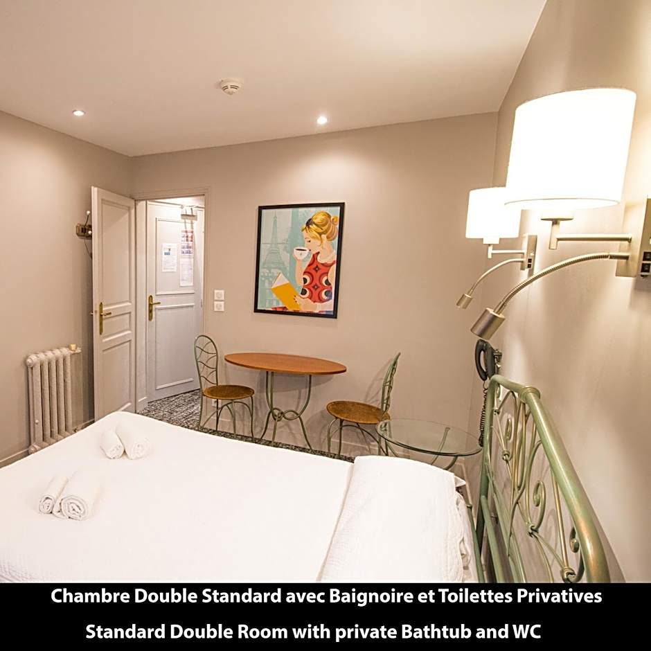 Great quiet hotel, traditionally charming with very lovely staff. We speak decent French and made an effort, but they do speak some English as well. We read reviews prior to coming and got a little scared, but it's nice rooms and breakfast is good. No tvs or restaurant, but we were in Paris for the Olympics so didn't really care. We had a room with a bathroom, which was on the street so a little noisy sometimes, but we took earplugs because August in Paris is always going to be hot and you are going to want the windows open. We used their dining room for dinner a few times and bought our own food in. I would stay again without hestitation. Location was fantastic for transport options and not as hectic as other bits of Paris. Room was clean and tidy and functional, bed was comfy. I'd liked not having to worry about my key when out.