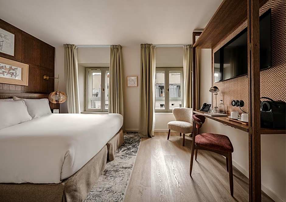 Elegant small hotel that updates an old pension. Room quite small as typical for Paris but efficient and nicely appointed. Staff is wonderful and always helpful. We even found ourselves in a long conversation about life and literature with the perceptive young Slovakian woman at check in. Pretty terrace and comfortable lobby stocked with shelves and shelves of art books. Very quiet even in the bustle of the 9th. Short walk to Metro and many attractions like National Library, Bourse Pinault, Passages packed with bookshops and cafes, and old Opera House