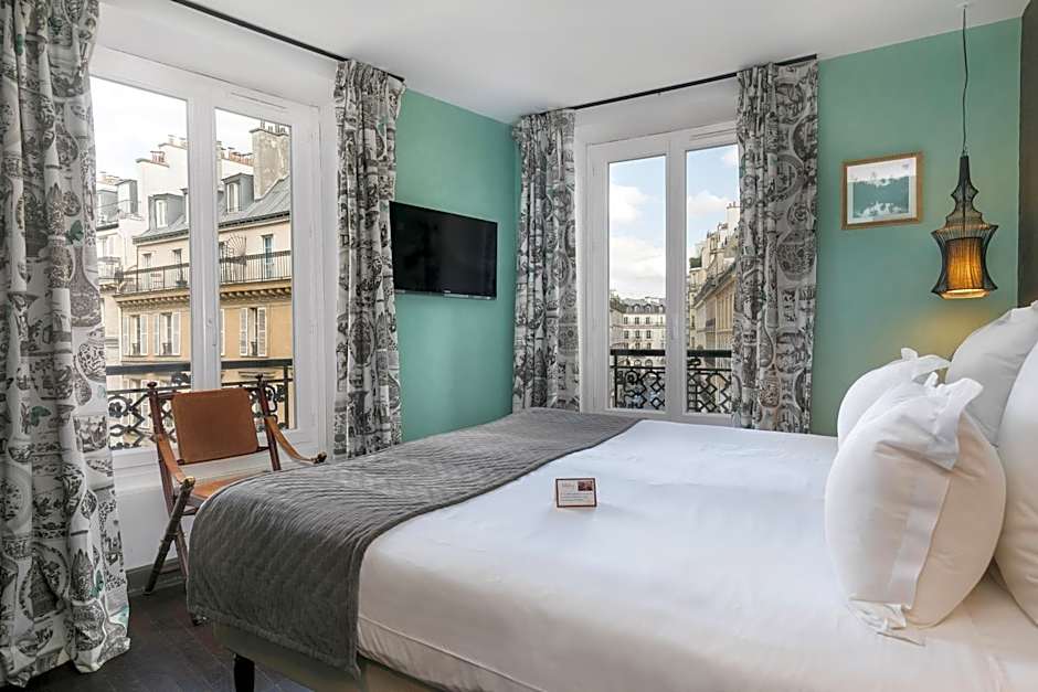 The room was quirky and came with a balcony but we had to move the bed to open the window to step up and over the window and once you are out, you have a lovely view with a small table and 2 chairs. Staff always very friendly and every day in reception the hotel offered free of charge - water, coffee, sweets, pastries. Great location and 5 min walk to Blanche metro and Moulin Rouge. Very safe location and easy access to many sights.