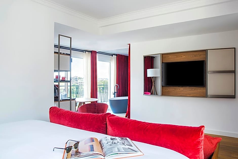 This spacious suite includes a top-floor balcony with views over Paris, a flat-screen TV, a mini-bar and free Wi-Fi access.
