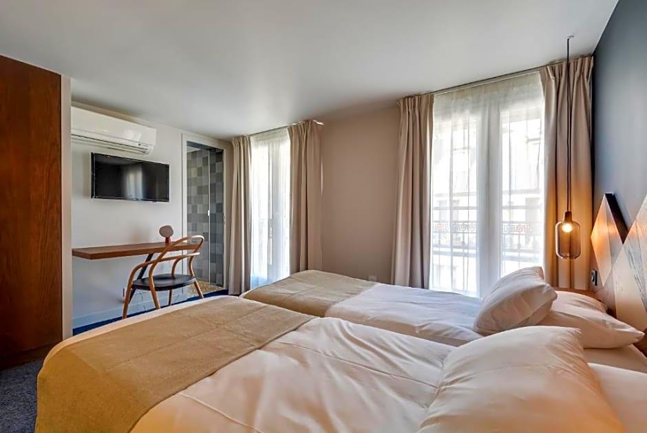 The Hotel had a lift, which was super as we were on the 6th floor. Clean and tidy room, well serviced on our stay by housekeeping. Very friendly reception staff, even though we had virtually no french to speak of. Right in the heart of Paris, Lots of bars and restaurants to choose from, across the road and a very short distances away. Nice breakfast and lovely coffee. I would return for another visit.