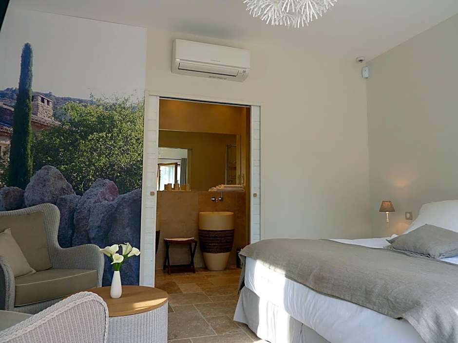 Beautiful modern accommodation finished to a very high standard. Huge comfortable bed with good quality linens and towels. Bathroom is also of an exceptional high standard. Delightful calm quiet setting in amongst the trees and beautiful pool and garden furniture to relax in. Hosts helpful and delightful and breakfast on the terrace wonderful.