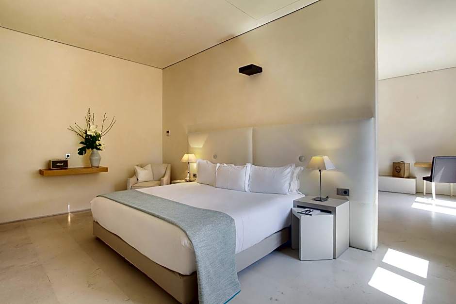 This suite features a living room, private terrace, bedroom with queen size bed and spacious bathroom.