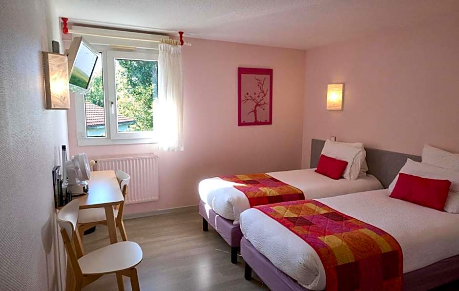 The hotel is on the outskirts of Riom on the route toVolvic.The hotel and facilities are fine ,the host is welcoming and the outstanding feature of the place i the food. Both the evening meal and the breakfast merited the Gourmand classification of the logis.