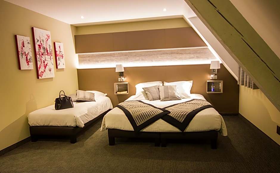 Hotel Au Nid De Cigognes offers a variety of rooms including Suite, Comfort 2 Beds, Standard 1 Double Bed or 2 Beds, Superior 1 Double Bed or 2 Beds, and Economy rooms. All rooms accommodate 2 adults and 1 child, with smoking not allowed. Beds in the rooms can vary between double and two beds.