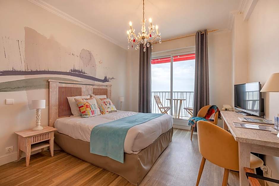 This side room offers a terrace with lateral sea view on the Flots street side. A TV, WiFi access and a bathroom with shower and toilet is provided.