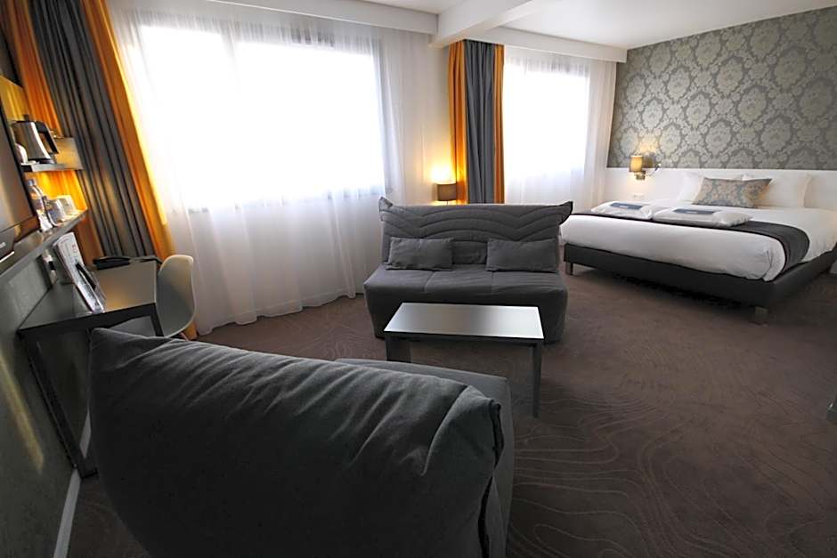 The hotel has an on-site restaurant called Le Parvis which offers a modern ambiance and serves French cuisine.