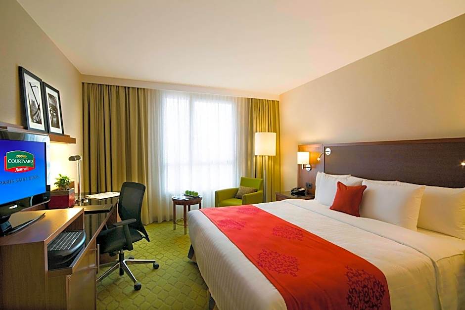 What types of rooms does Courtyard by Marriott Paris Saint Denis offer?