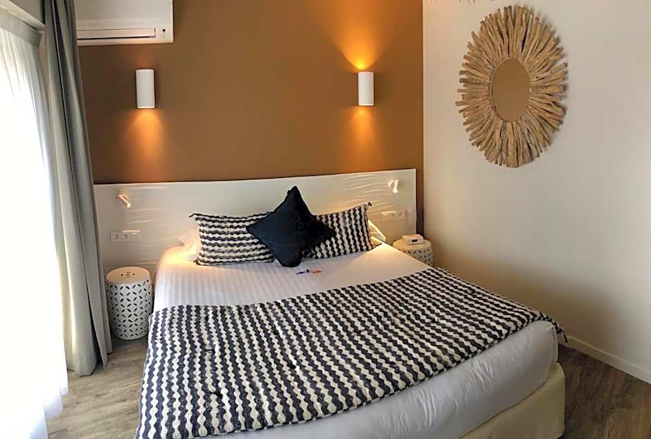 This suite is located on the ground floor of the hotel has two spaces and a large bay window overlooking the pool of the hotel. There is a canopy bed and a small living room with a comfortable sofa bed.There is also a mini-bar, a Nespresso coffee machine, a safe and a flat screen TV.