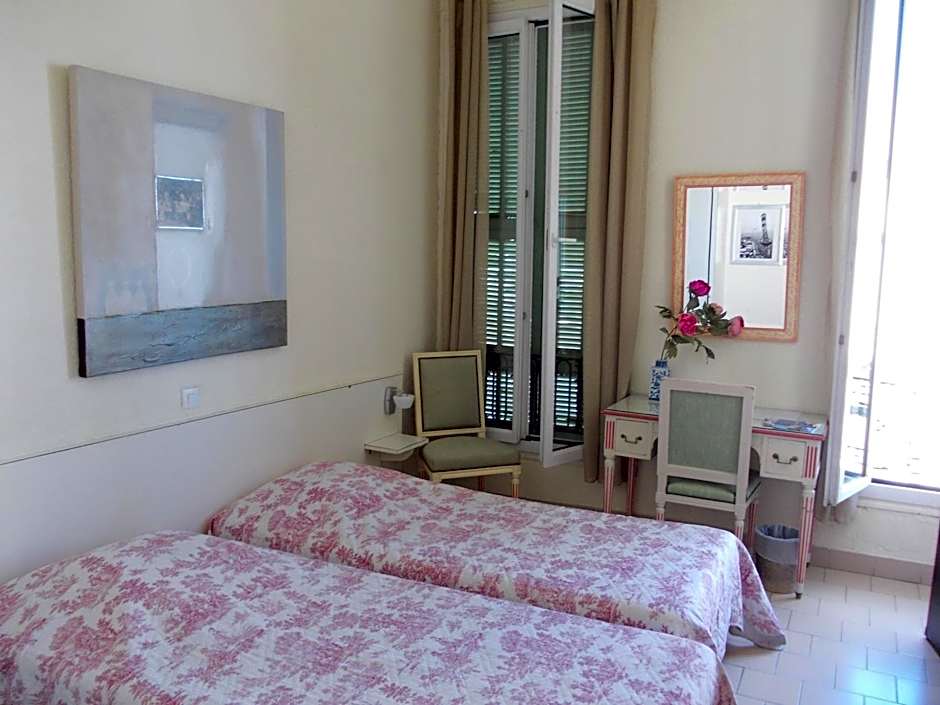 Very nice host, it is a small family hotel, you can breakfast in nearby cafe for just 3 euro (croissant and coffee), close access to good beaches just 7 min walk! All infrastructure very close, bus and train to nice in 25 min! No need for a car! Shops everywhere! For 85 euro a night - good price for this location!