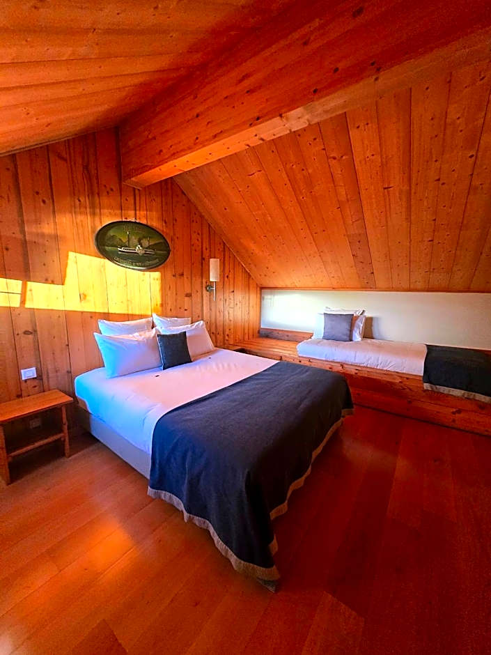 All rooms feature views of the lake and and 2 TVs with satellite channels. This room is located on the top floor and is decorated in a chalet style. All guest will sleep in the same bedroom.