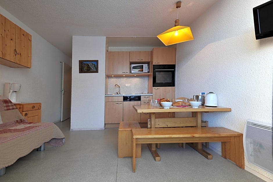 Fantastic location looking out over the slopes. Ski lockers have a back door to get quickly to slope. Basic studio - suits couple.