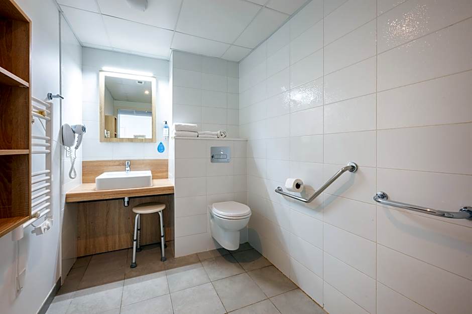 Studio apart for 2 people with wheelchair access is 258 square feet and includes a double bed 131-150 width plus hairdryer and tea and coffee making facilities and is Wheelchair-accessible.