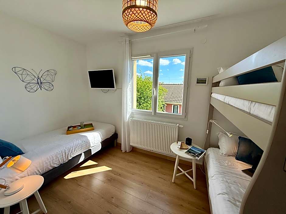 The accommodation was very clean and very modern - it was newly built and is in excellent condition. It is located not far from Lyon, in a very calm area. Private parking space is a big advantage. Very kind, warm, and individual approach from the owner/staff. With the shared common areas (kitchen and living room) it feels like home.