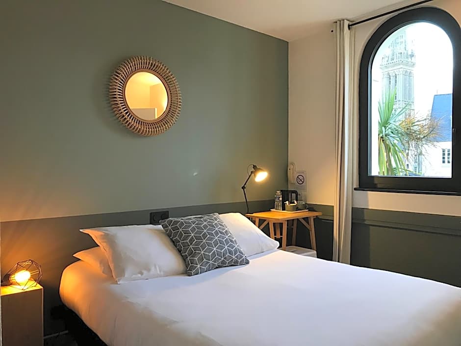 Discover exclusively our brand new Suite 29, the result of our latest renovations at the Hôtel de France. Designed as a genuine residence, this 98 ft² suite is the perfect cocoon for your long stays exploring North Finistère. Overlooking the town, these rooms have queen size beds (twin on request), flat screen TV, tea & coffee facilities. The suite is divided into two distinct areas: a living room with a sofa and a desk and a sleeping area. The bathroom has a shower, hairdryer and free toiletries.