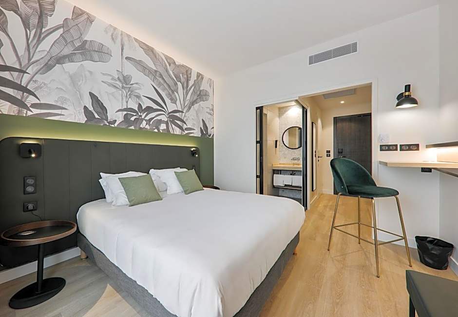 Easy to reach and spacious parking Right size of the room, cool design of bathroom. Creates more space for the room is you travel alone like me. new & modern room with domotica, nice design, good bed breakfast OK but not great. However good for French hotel.