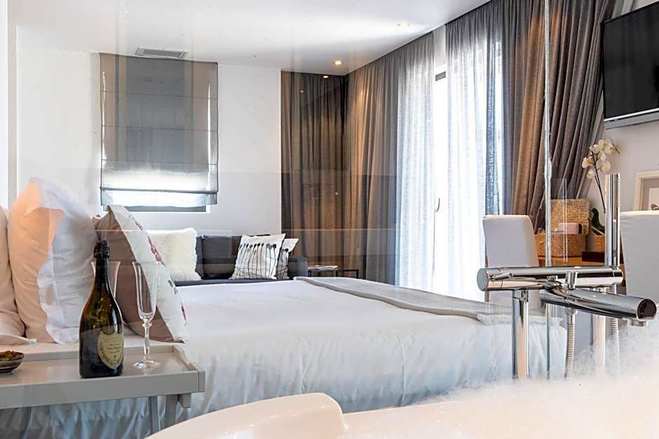 Located on the first floor, this suite features a private terrace with views of Saint-Tropez, the sea and the pool. It is equipped with an open bathroom. There is a double bed and a sofa bed for 2 people in this suite.